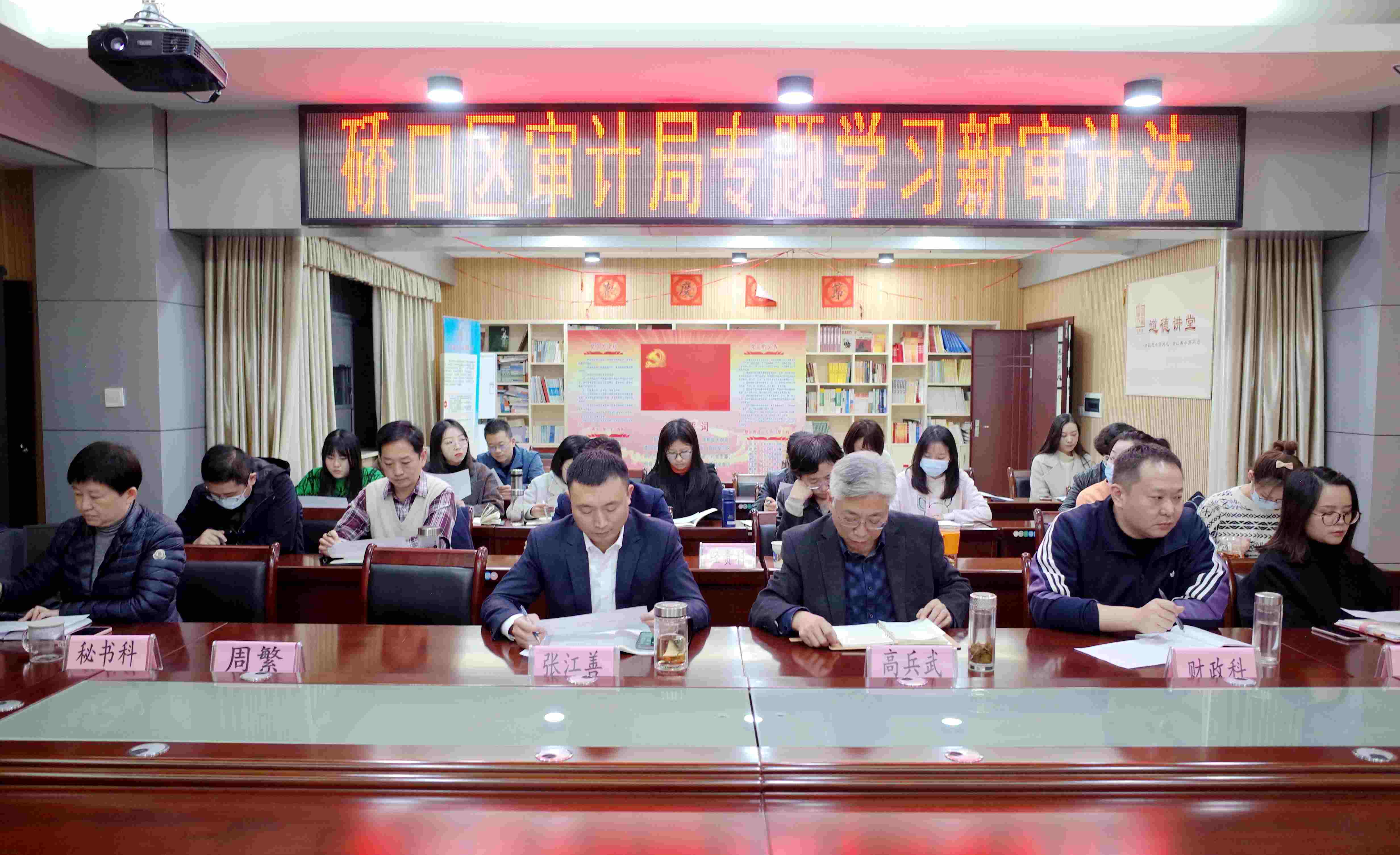 图为该局全体干部认真研学审计法修订内容