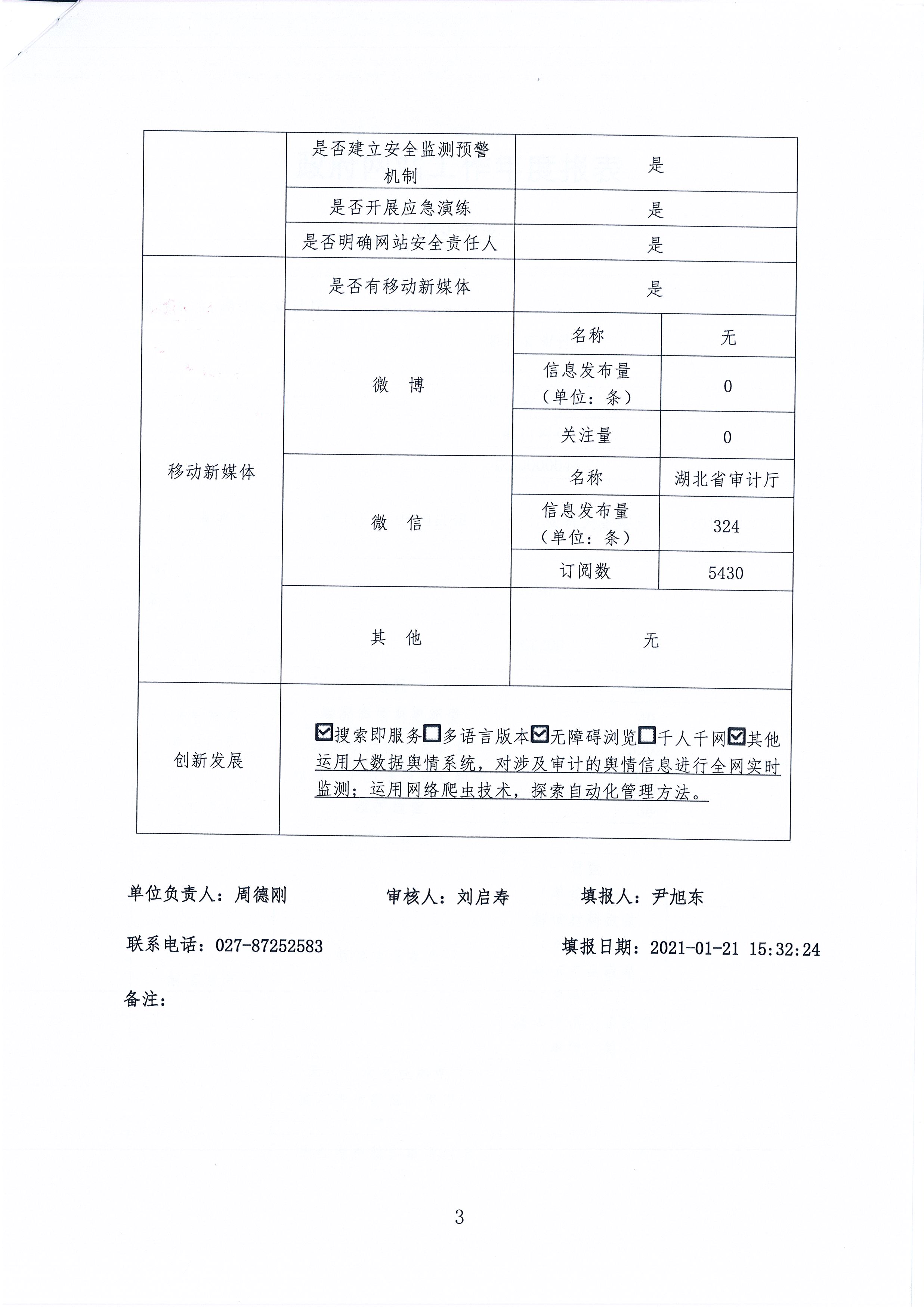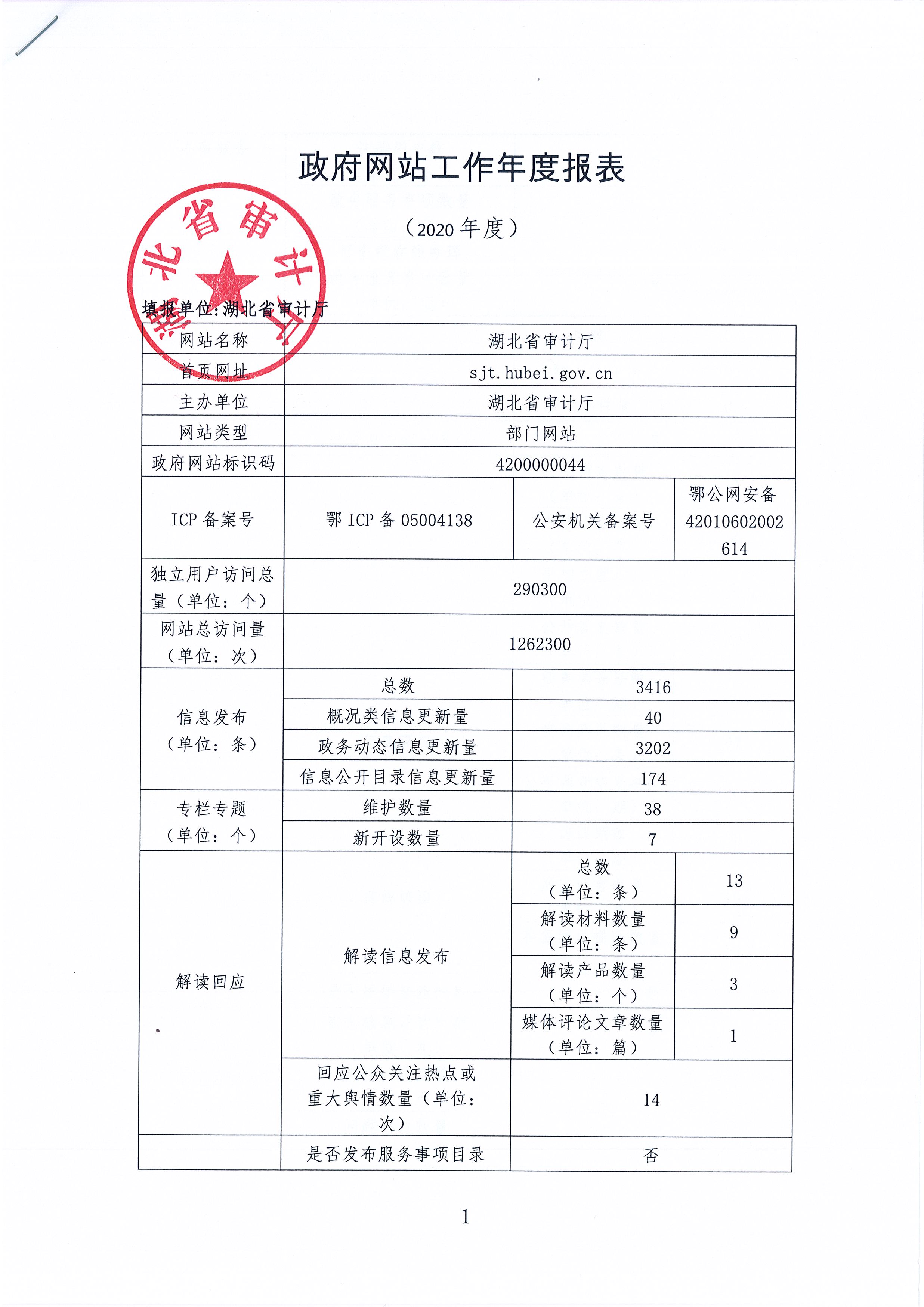 湖北省审计厅2020年政府网站工作年度报表